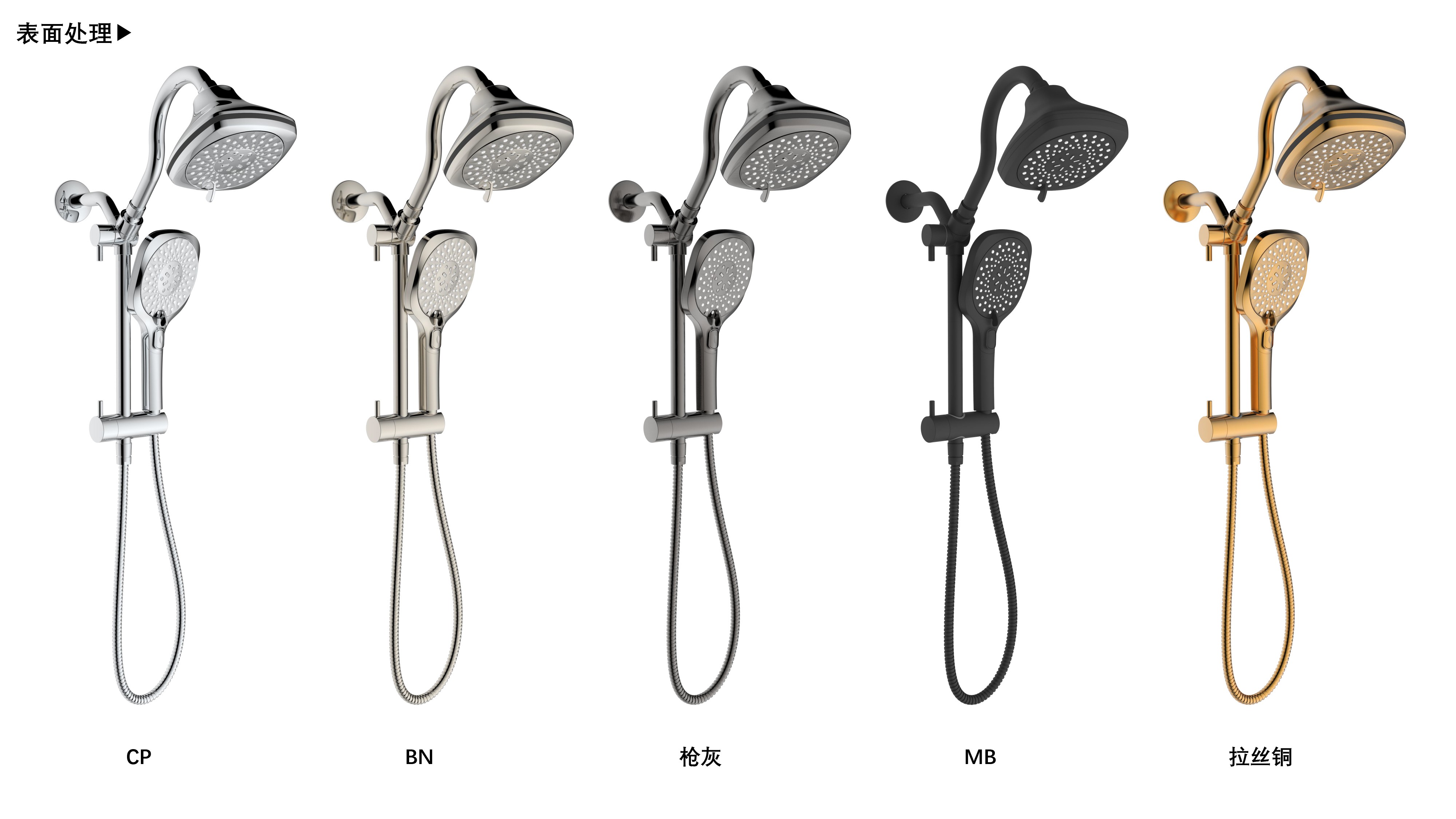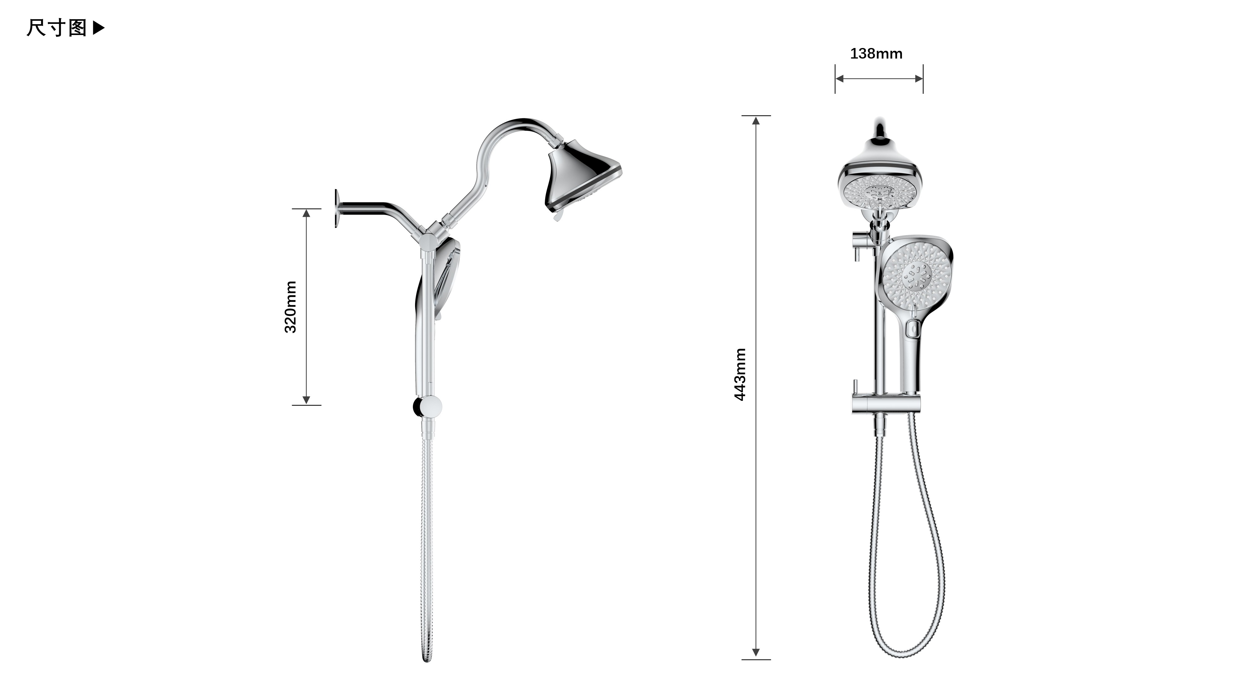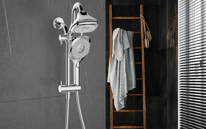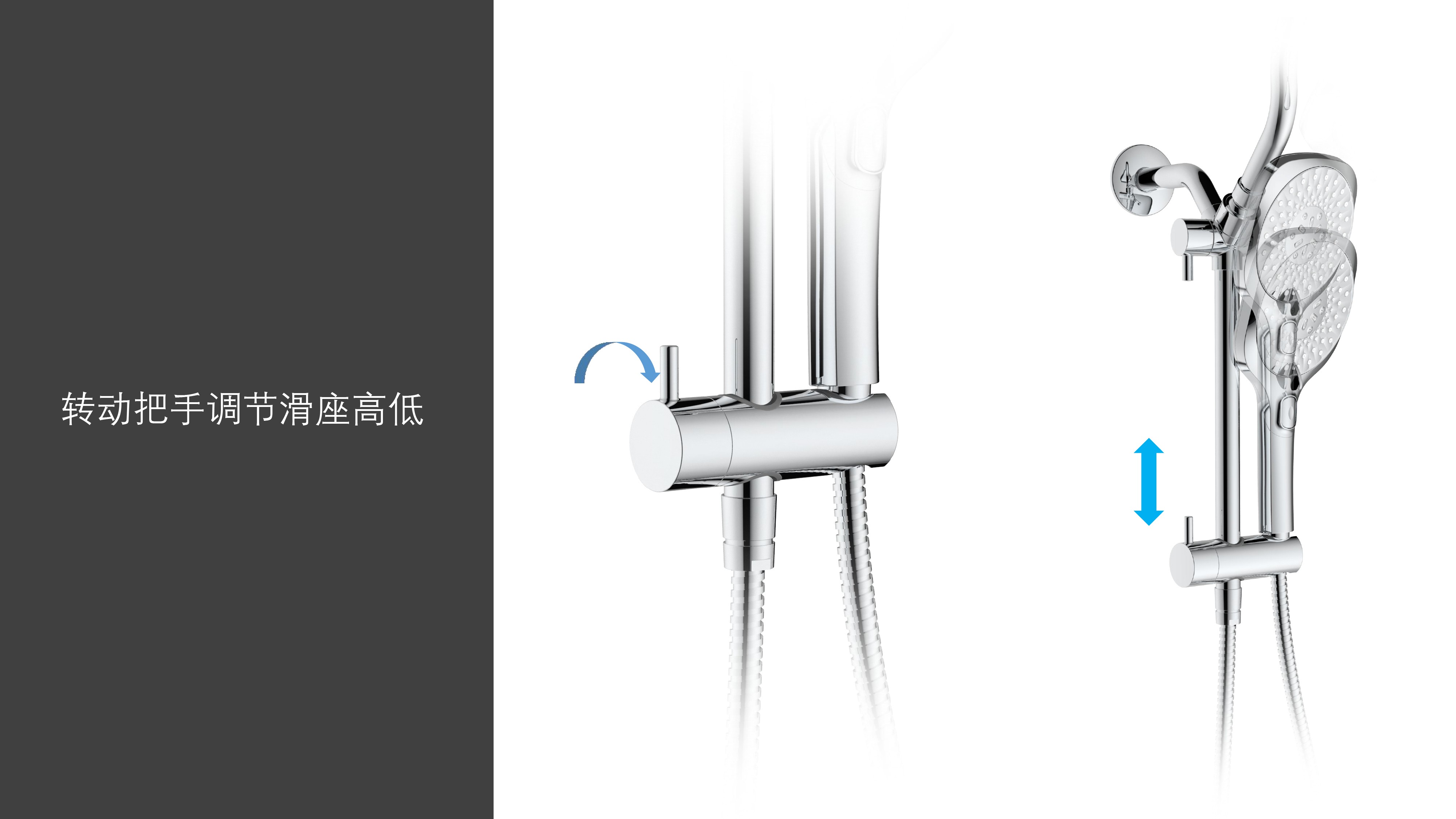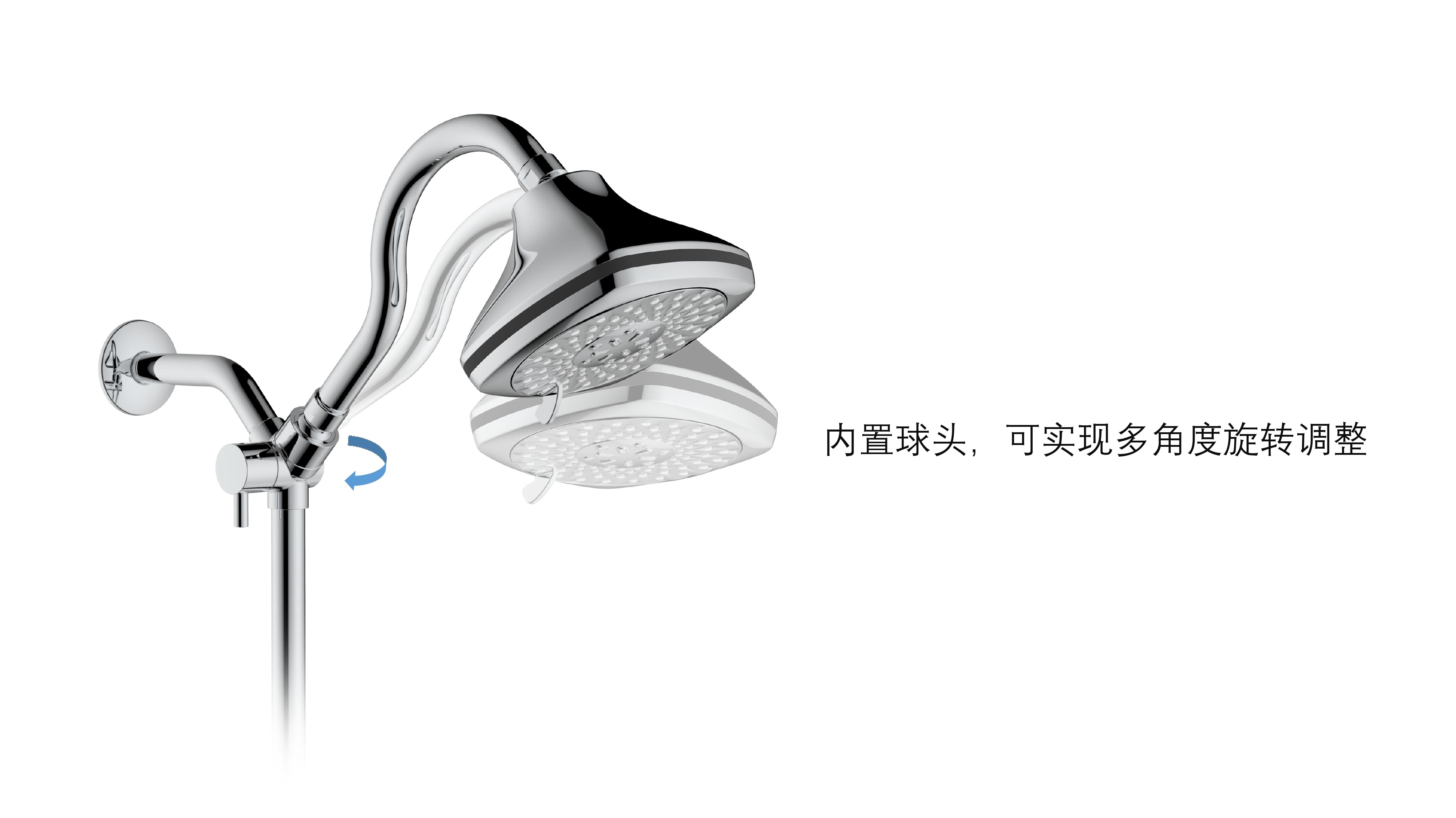 上出水彎管套裝;頂噴內(nèi)置球頭,可實(shí)現(xiàn)多角度旋轉(zhuǎn)調(diào)整;把手切換頂噴出水、花灑出水;轉(zhuǎn)動把手調(diào)節(jié)滑座高低;8功能出水花灑